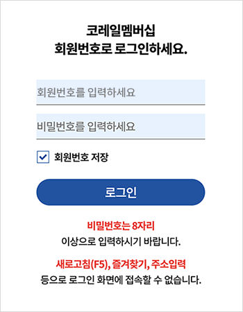 3)로그인하기 : 멤버십 번호, 비밀번호를 입력해주세요.