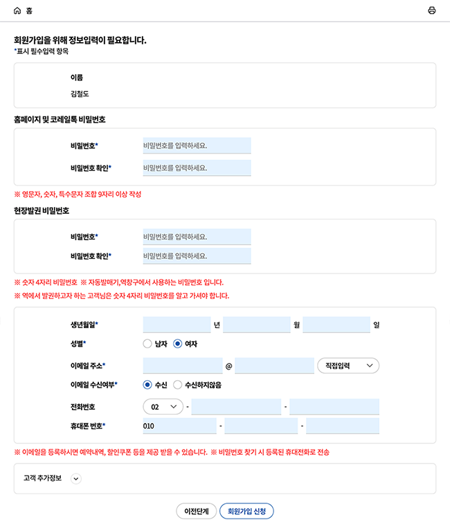 2) 코레일 회원가입 및 로그인 정보를 사전에 준비해 두는 것이 필수입니다.